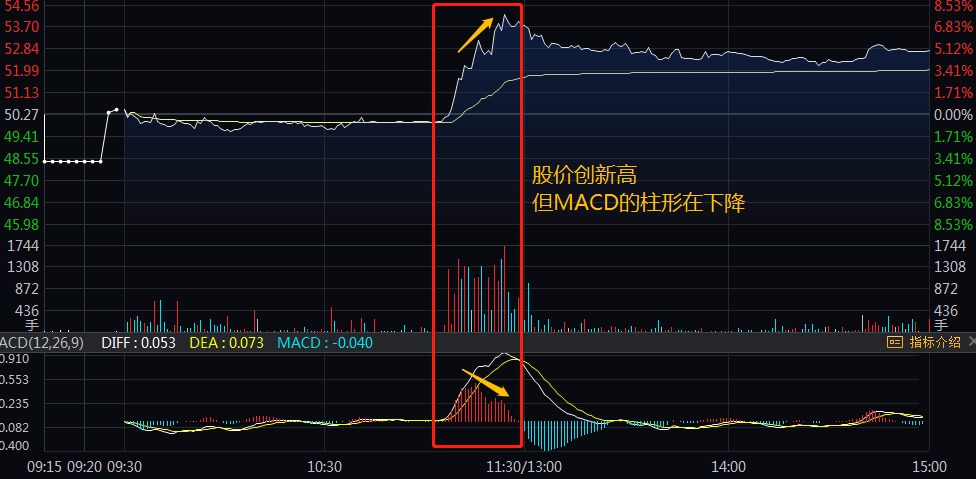 第三,当股价与MACD背离时,做T卖出股票