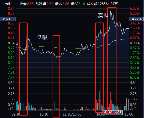 下面再说一下分时图低吸,做短线经常会用到的技能。对超短线来说分时图进场点很关键。